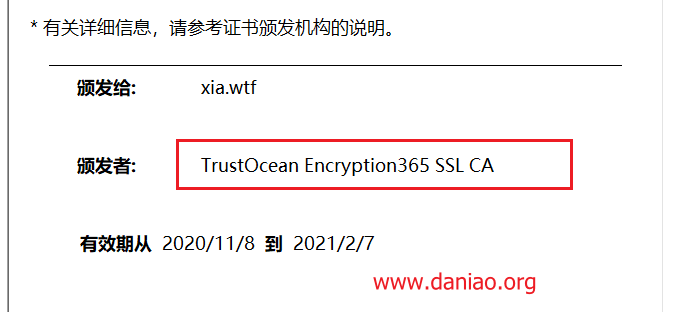 目前申请会遇到一直显示验证中,但是登录他们网站的控制面板console.trustocean.com看到是已签发了的。我们可以不用管这个问题,直接回到网站域名,打开后发现证书已经签发。