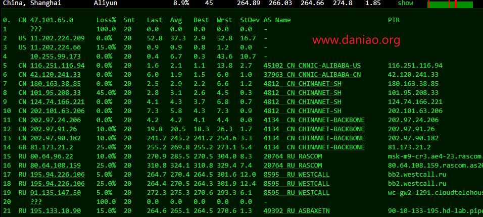 traceroute to mall.gd10010.cn (112.96.29.67), 30 hops max, 60 byte packets 1 * 2 10.11.12.37 3.42 ms * 局域网 3 msk-m9-b1-ae30-vlan449.fiord.net (62.140.243.62) 1.59 ms AS28917 俄罗斯 莫斯科 fiord.ru 4 frankfurt-anc-b1-xe0-0-0.fiord.net (93.191.9.155) 38.10 ms AS28917 德国 黑森州 法兰克福 fiord.ru 5 ae7-1245.cr1-fra6.ip4.gtt.net (46.33.79.153) 38.33 ms AS3257 德国 黑森州 法兰克福 gtt.net 6 ae21.cr2-fra6.ip4.gtt.net (213.200.116.225) 38.86 ms AS3257 德国 黑森州 法兰克福 gtt.net 7 219.158.43.189 57.52 ms AS4837 中国 联通 8 219.158.11.165 202.44 ms AS4837 中国 广东 广州 联通 9 219.158.97.30 213.52 ms AS4837 中国 广东 广州 联通 10 219.158.8.113 225.16 ms AS4837 中国 广东 广州 联通 11 112.96.0.146 208.06 ms AS17816 中国 广东 广州 联通 12 120.80.120.90 200.71 ms AS17622 中国 广东 广州 联通 13 * 14 112.96.29.67 216.96 ms AS17622 中国 广东 广州 联通
