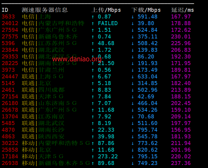 电信平均178ms,联通平均响应210ms,移动平均响应247ms