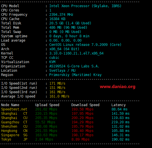- gcorelabs(伯力、海参崴)月付1欧- 1核/488M内存/8GB SSD/288GB流量(附测评教程)