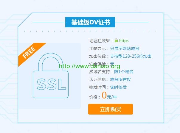 免费DV SSL证书,一次申请每个域名1年,每个阿里账户可以签发20张免费证书。单个域名、二级域名,单独申请是分开算的。
