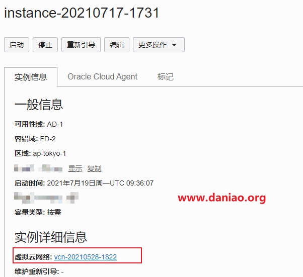 1)登录甲骨文后,根据以下路径选择,“计算”-“实例”-“实例详细信息”-“虚拟云网络”