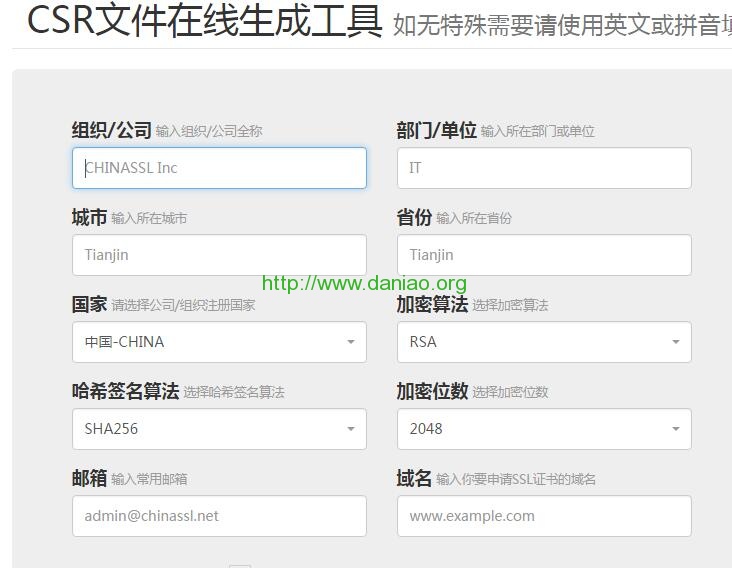 CSR生成地址:https://csr.chinassl.net/generator-csr.html