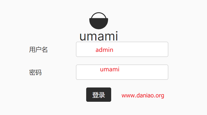 2)访问,用你的域名开始访问,默认的管理员账号:admin,密码:umami,注意登录后修改自己的密码。