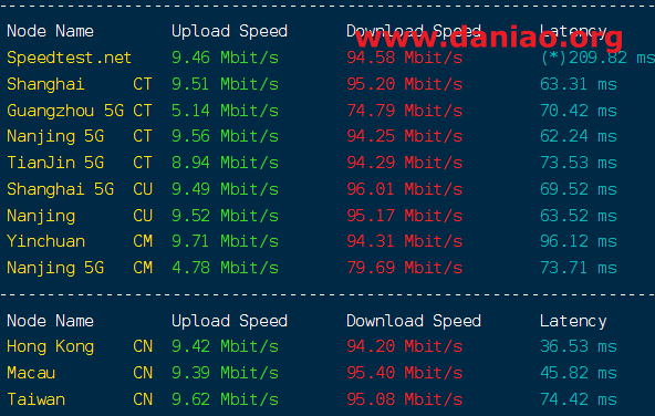江苏电信100M带宽测速:19点36分测速结果,具体如下: