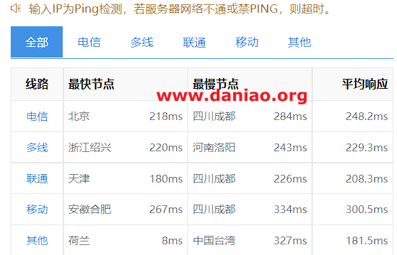 国内测速,白天9天的测试结果,三网跑的比较平均。