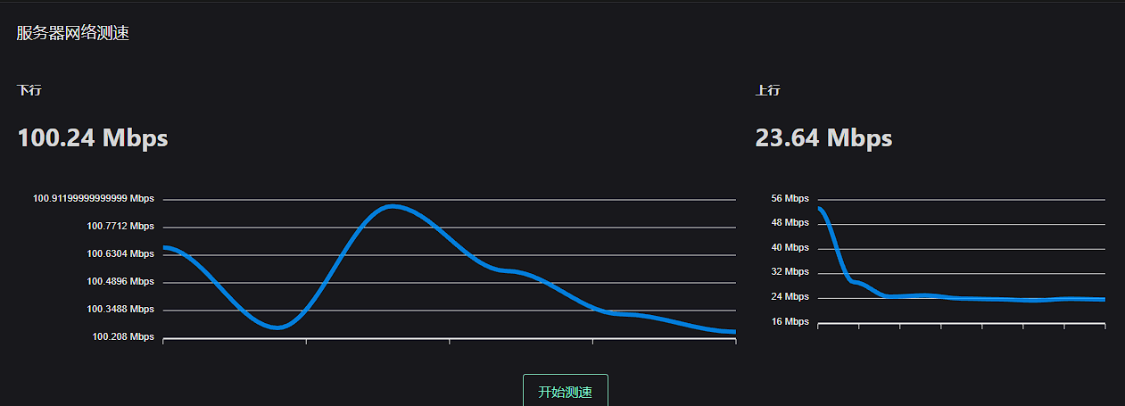 服务器网络测速:江苏电信100M带宽晚高峰22点测试结果: