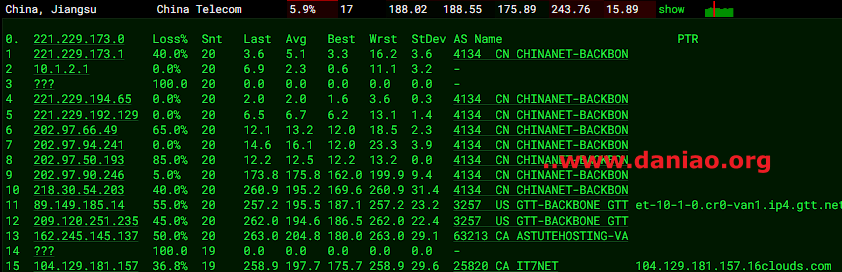 电信去程:电信163对接gtt,先到圣何塞,之后直连到温哥华!