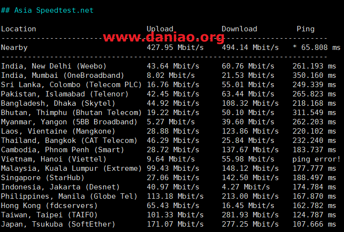 Traceroute to China, Guangzhou CM (TCP Mode, Max 30 Hop) ============================================================ traceroute to 120.196.212.25 (120.196.212.25), 30 hops max, 32 byte packets 1 193.41.250.7 0.29 ms AS906 United States, California, San Jose, dmit.io 2 * 3 62.115.171.215 103.43 ms AS1299 United States, California, San Jose, telia.com 4 223.120.6.69 103.35 ms AS58453 United States, California, San Jose, ChinaMobile 5 * 6 * 7 * 8 * 9 * 10 * 11 211.136.203.6 190.70 ms AS56040 China, Guangdong, Guangzhou, ChinaMobile 12 183.235.232.133 192.26 ms AS56040 China, Guangdong, Shenzhen, ChinaMobile 13 211.139.180.106 192.66 ms AS56040 China, Guangdong, Guangzhou, ChinaMobile 14 * 15 * 16 120.196.212.25 197.78 ms AS56040 China, Guangdong, Guangzhou, ChinaMobile Traceroute to China, Shanghai CM (TCP Mode, Max 30 Hop) ============================================================ traceroute to 221.183.55.22 (221.183.55.22), 30 hops max, 32 byte packets 1 193.41.250.7 0.38 ms AS906 United States, California, San Jose, dmit.io 2 * 3 62.115.125.161 0.80 ms AS1299 United States, California, San Jose, telia.com 4 213.248.75.237 140.27 ms AS1299 United States, California, San Jose, telia.com 5 223.120.6.105 140.34 ms AS58453 United States, California, San Jose, ChinaMobile 6 223.120.13.73 196.71 ms AS58453 China, Shanghai, ChinaMobile 7 221.183.89.170 197.26 ms AS9808 China, Shanghai, ChinaMobile 8 * 9 * 10 * 11 * 12 * 13 * 14 * 15 * 16 * 17 * 18 * 19 * 20 * 21 * 22 * 23 * 24 * 25 * 26 * 27 * 28 * 29 * 30 * Traceroute to China, Beijing CM (TCP Mode, Max 30 Hop) ============================================================ traceroute to 211.136.25.153 (211.136.25.153), 30 hops max, 32 byte packets 1 193.41.250.7 0.48 ms AS906 United States, California, San Jose, dmit.io 2 * 3 62.115.171.215 103.34 ms AS1299 United States, California, San Jose, telia.com 4 223.120.6.225 120.80 ms AS58453 United States, ChinaMobile 5 223.120.12.34 191.01 ms AS58453 China, Beijing, ChinaMobile 6 221.183.55.106 192.57 ms AS9808 China, Beijing, ChinaMobile 7 221.183.46.250 180.41 ms AS9808 China, Beijing, ChinaMobile 8 221.183.89.102 177.35 ms AS9808 China, Beijing, ChinaMobile 9 * 10 * 11 211.136.63.66 181.92 ms AS56048 China, Beijing, ChinaMobile 12 211.136.95.226 180.77 ms AS56048 China, Beijing, ChinaMobile 13 * 14 * 15 211.136.25.153 182.70 ms AS56048 China, Beijing, ChinaMobile