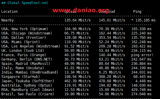 服务器网络测速:江苏电信100M带宽16点测试结果,仅供参考。