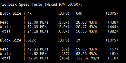 磁盘真实性能读写测试:一般数据在 大于20MB/s 为合格,大于40MB/s 为普通,大于80MB/s 为优秀。