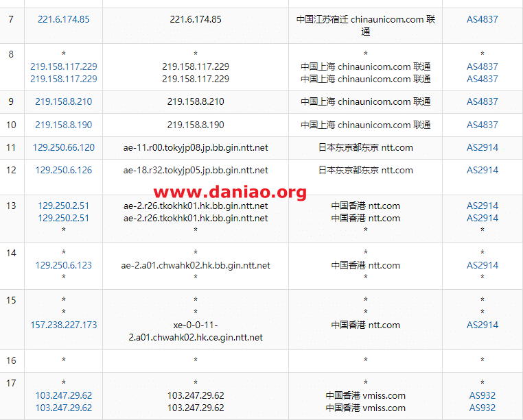 北京/深圳联通:走ntt,绕日本大阪,之后从日本回来。