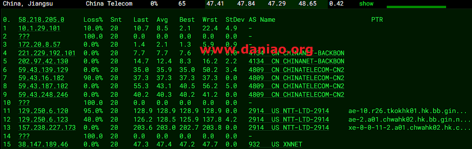 电信去程:好家伙,直接cn2直连香港。