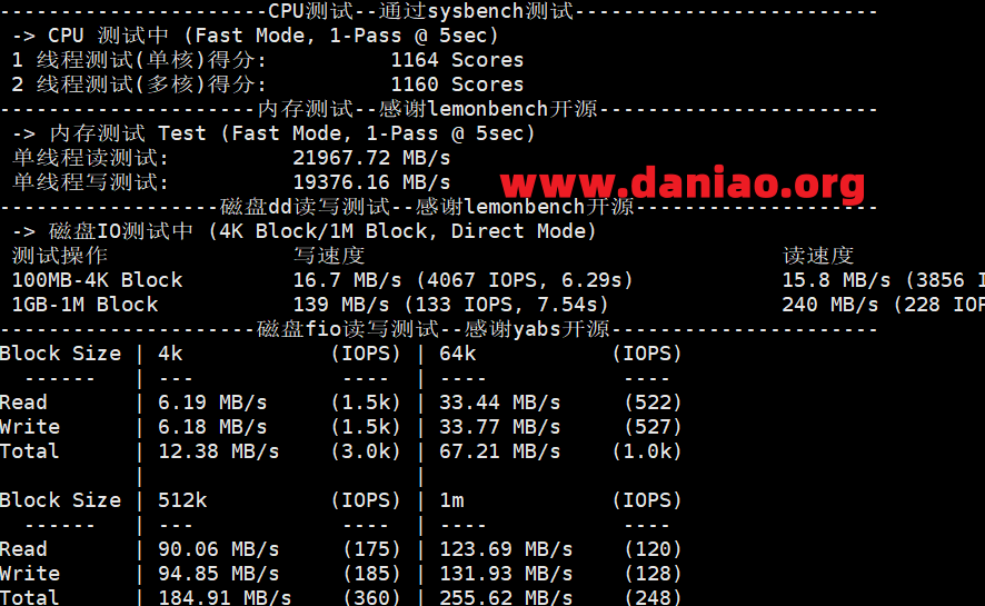 Common KVM processor(CPU型号被隐藏),磁盘IO大致在224.0 MB/s。