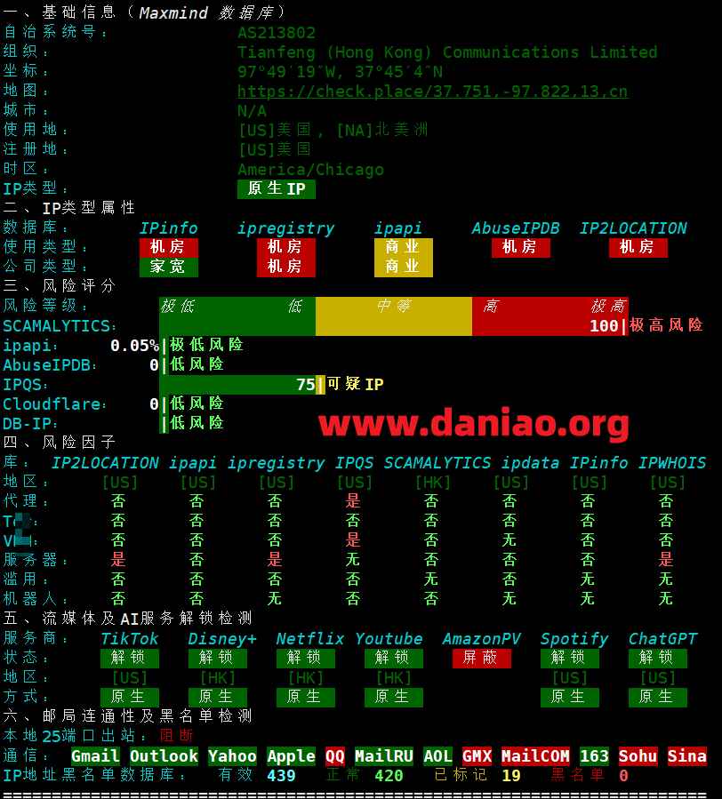IP很干净,而且解锁性能很强,甚至部分数据库判断为ISP属性…