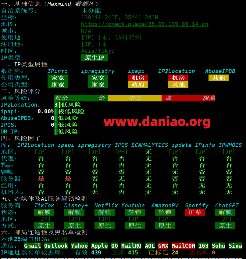 根据上面的测评数据,可以看出IP为原生IP,双ISP属性,解锁能力优秀。