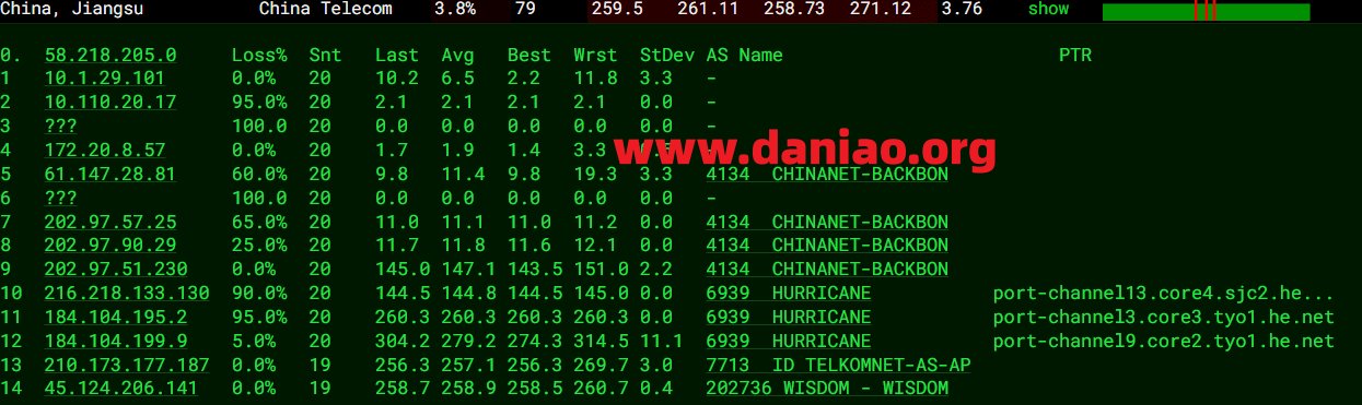 电信去程:电信骨干线路直连美西,之后从洛杉矶接驳he.net直连日本。
