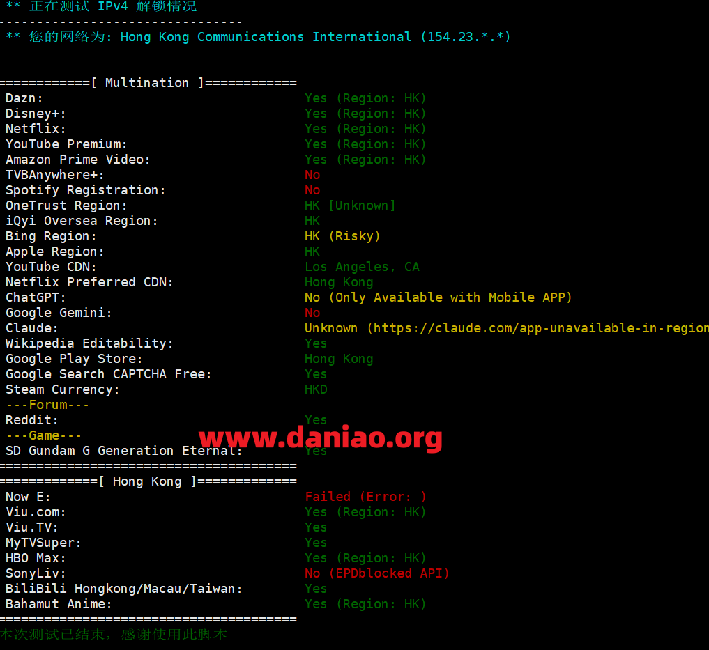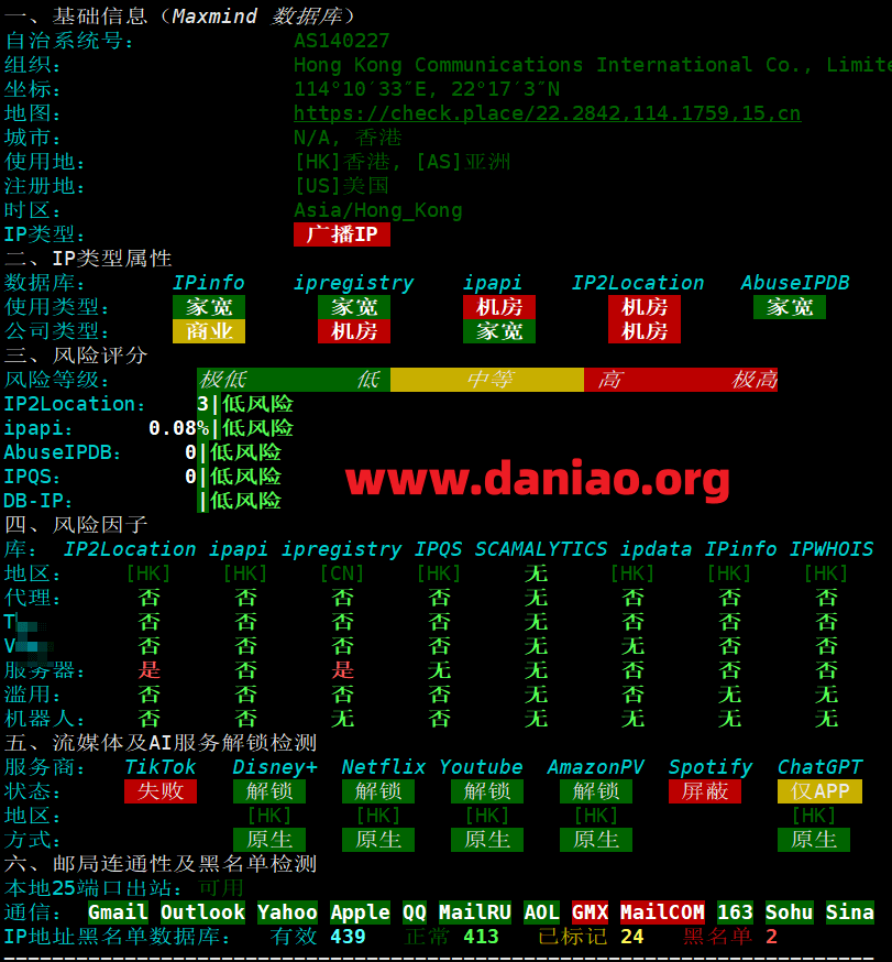 CPU为Intel(R) Xeon(R) Gold 6138 CPU @ 2.00GHz,IP归属地为香港,仅支持ipv4,不支持ipv6,磁盘IO测试为800.7 MB/s