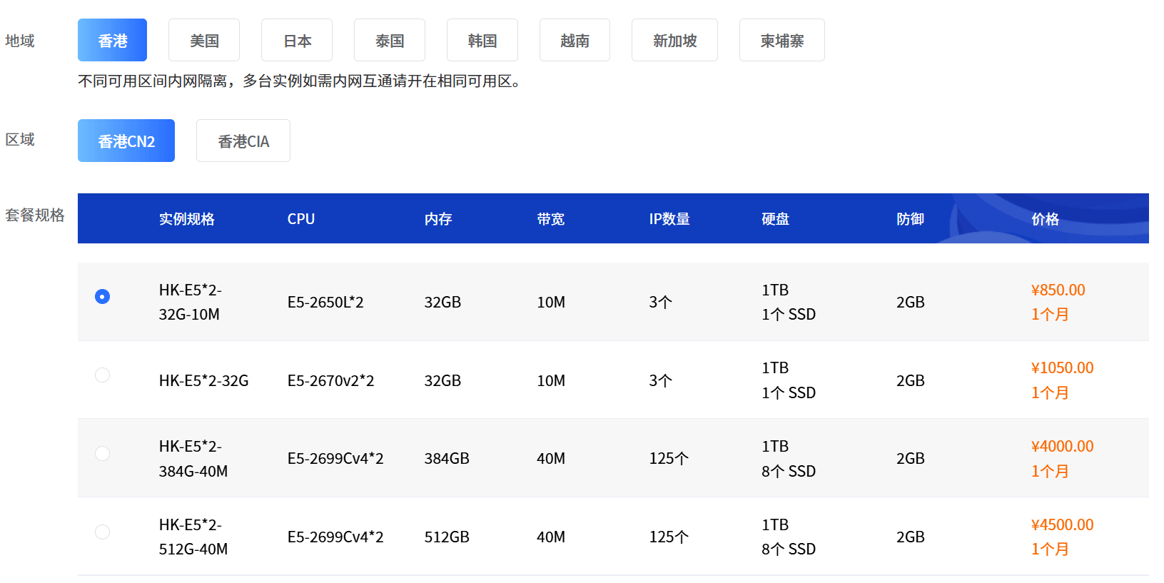 硬件配置:E5-2670处理器+32G内存+50Mcn2独享带宽,月费107美元起