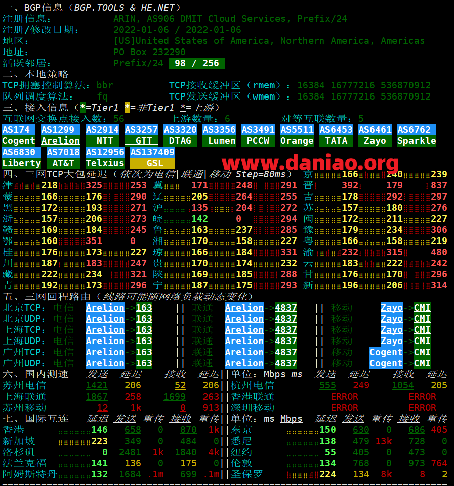 五、三网回程路由(线路可能随网络负载动态变化) 北京TCP:电信 Arelion->163 || 联通 Arelion->4837 || 移动 Zayo->CMI 北京UDP:电信 Arelion->163 || 联通 Arelion->4837 || 移动 Zayo->CMI 上海TCP:电信 Arelion->163 || 联通 Arelion->4837 || 移动 Zayo->CMI 上海UDP:电信 Arelion->163 || 联通 Arelion->4837 || 移动 Zayo->CMI 广州TCP:电信 Arelion->163 || 联通 Arelion->4837 || 移动 Cogent->CMI 广州UDP:电信 Arelion->163 || 联通 Arelion->4837 || 移动 Cogent->CMI