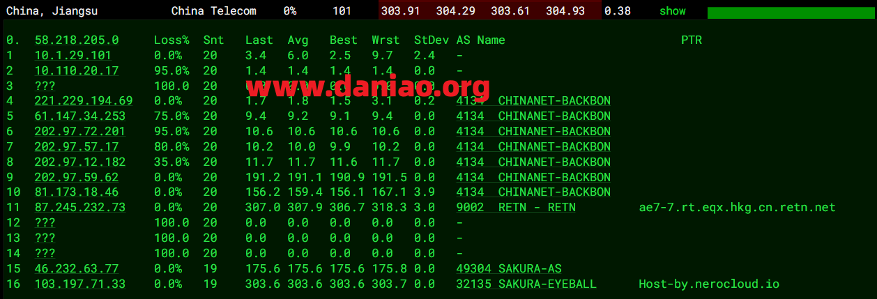电信回程:走lumen绕美西圣何塞之后接驳Level3出海回国~