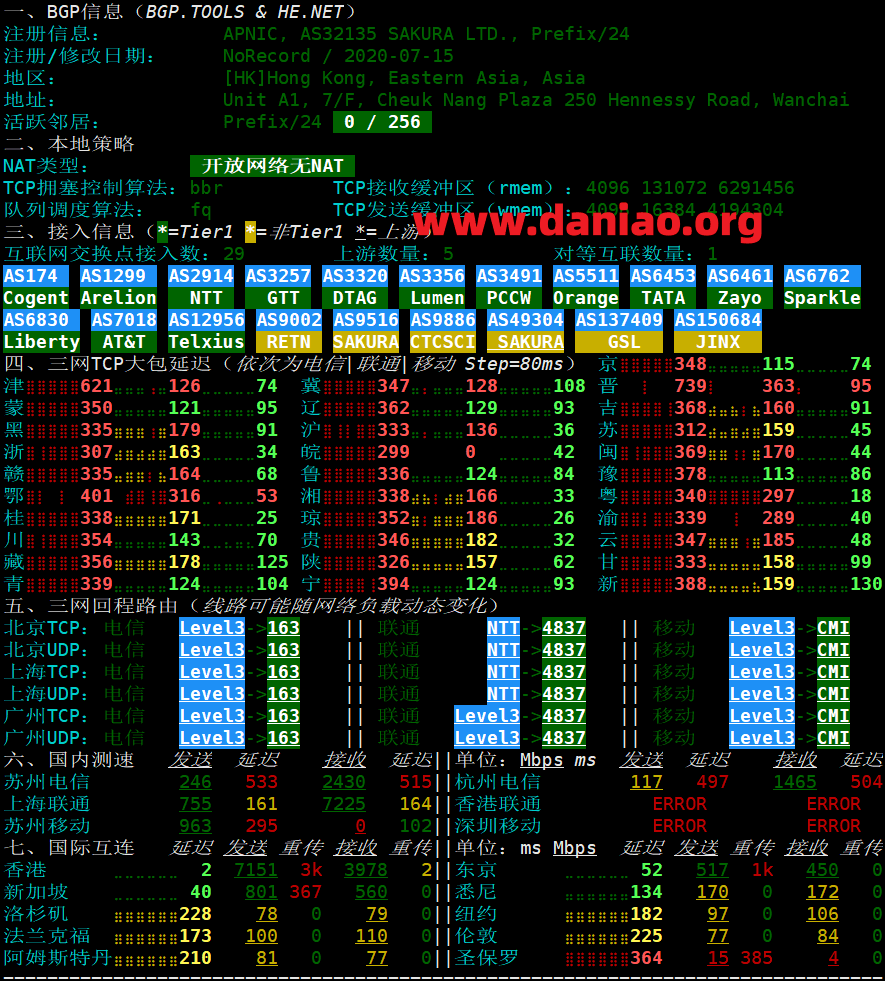 五、三网回程路由(线路可能随网络负载动态变化) 北京TCP:电信 Level3->163 || 联通 NTT->4837 || 移动 Level3->CMI 北京UDP:电信 Level3->163 || 联通 NTT->4837 || 移动 Level3->CMI 上海TCP:电信 Level3->163 || 联通 NTT->4837 || 移动 Level3->CMI 上海UDP:电信 Level3->163 || 联通 NTT->4837 || 移动 Level3->CMI 广州TCP:电信 Level3->163 || 联通 Level3->4837 || 移动 Level3->CMI 广州UDP:电信 Level3->163 || 联通 Level3->4837 || 移动 Level3->CMI