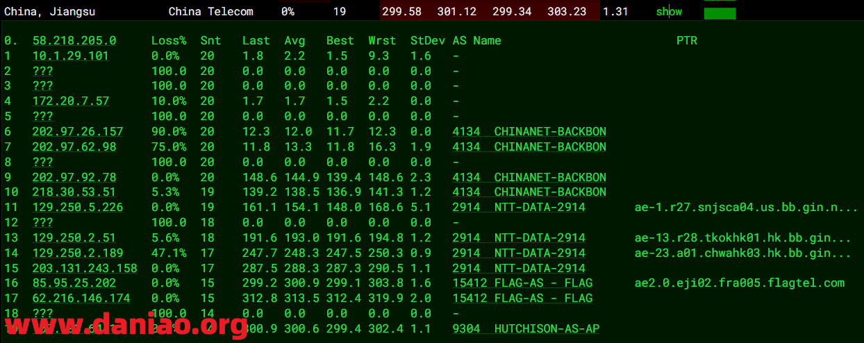 11 202.96.209.133 AS4812 [CHINANET-SH] 中国 上海 chinatelecom.cn 电信