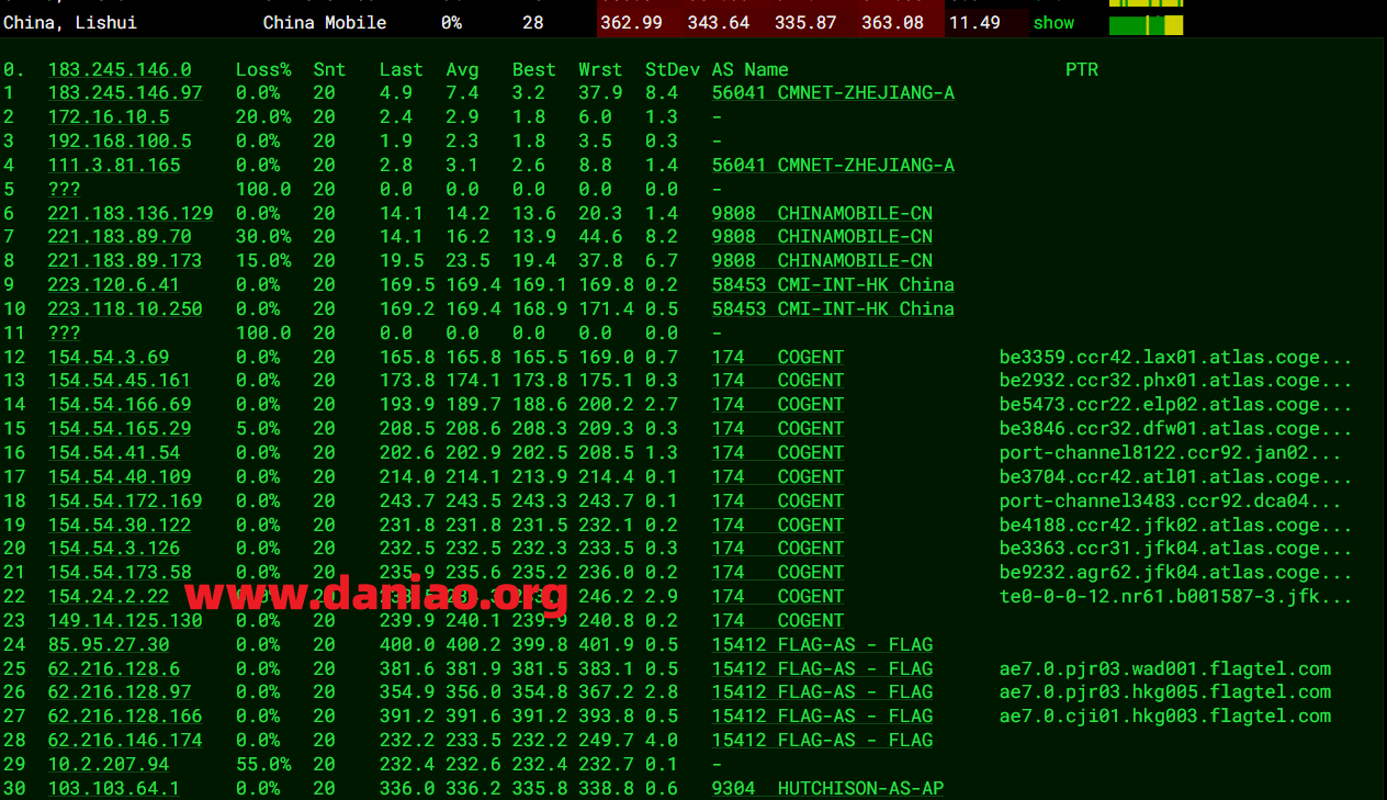 6 223.120.2.45 AS58453 [CMI-INT] 中国 香港 cmi.chinamobile.com 移动