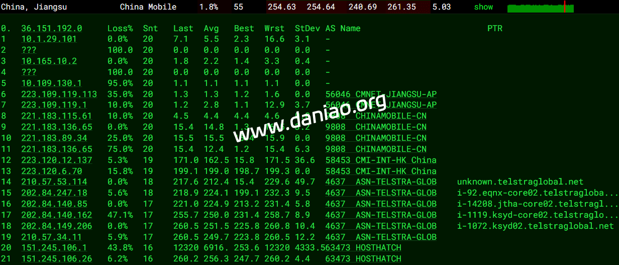 移动去程:移动cmi先去香港之后接驳Telstra去韩国。