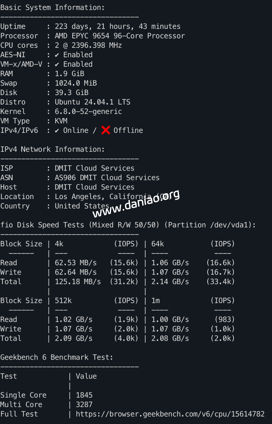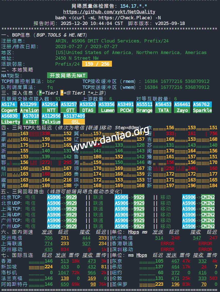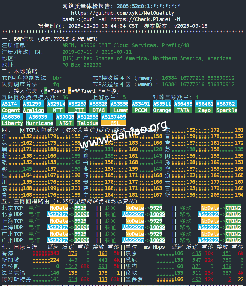 DMIT(昵称大妈)的美国洛杉矶LAX.EB VPS套餐,硬件有 AN4 / AN5 两档,性能差异较大,之前促销套餐硬件为AN4 ,常规版本为AN5。该套餐的具体路由为联通/电信 CUG VIP(9929)回程;移动 CMIN2 回程。电信 CTG GIA 去程;联通 CUG VIP(9929)去程;移动 CMIN2 去程,此外IPv6 也是双程三网优化(CMIN2+CUG VIP 回程),这篇笔记就来测评分享下更新硬件后的LAX.EB套餐的测评数据~