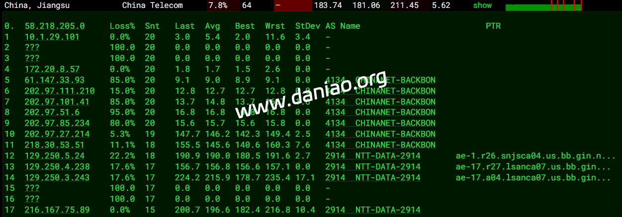 电信去程:直连电信美国圣何塞节点,然后接NTT去洛杉矶