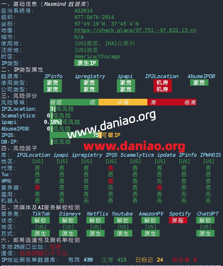 VPS性能普通,不过特色是美国原生IP,双ISP住宅属性,解锁能力优秀(具体数据参考上面的测评数据。)