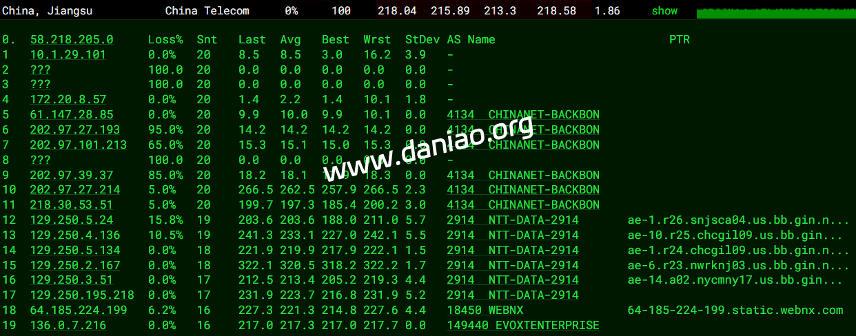 电信去程,电信163直连美西之后接驳ntt去往纽约