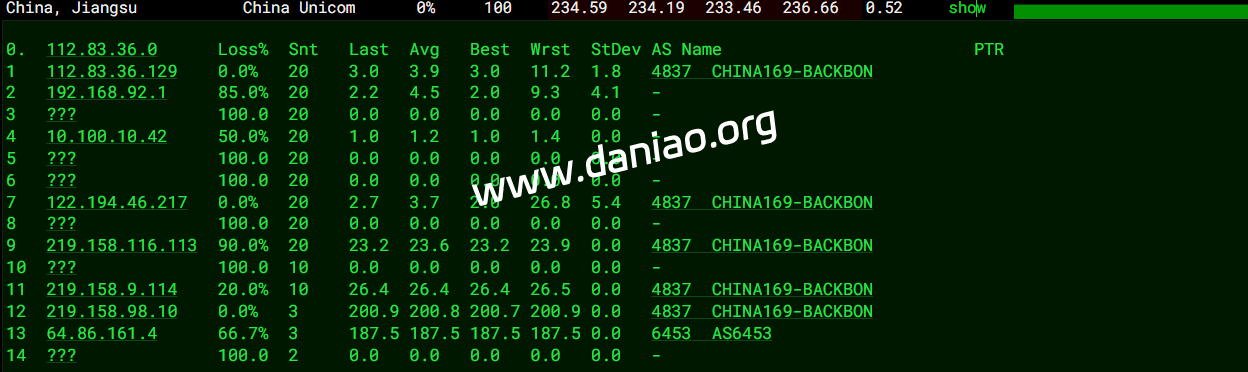 联通去程,联通骨干线路直连美西之后接驳tata去往纽约