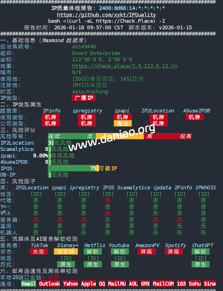 Evoxt有印度尼西亚VPS套餐出售,$2.99/月起,特色AMD高性能处理器+NVMe硬盘,1Gbps大带宽,1*IPv4+1*IPv6双栈,支持每周备份,支持Windows server 2012/2016/2022。目前该商家还有优化线路套餐:中国香港、日本(大阪)和马来西亚;普通线路有美国、英国、加拿大、德国、波兰、阿姆斯特丹、日本(东京)、马来西亚和澳大利亚。这篇笔记就来测评分享该商家的印度尼西亚VPS的测评数据……