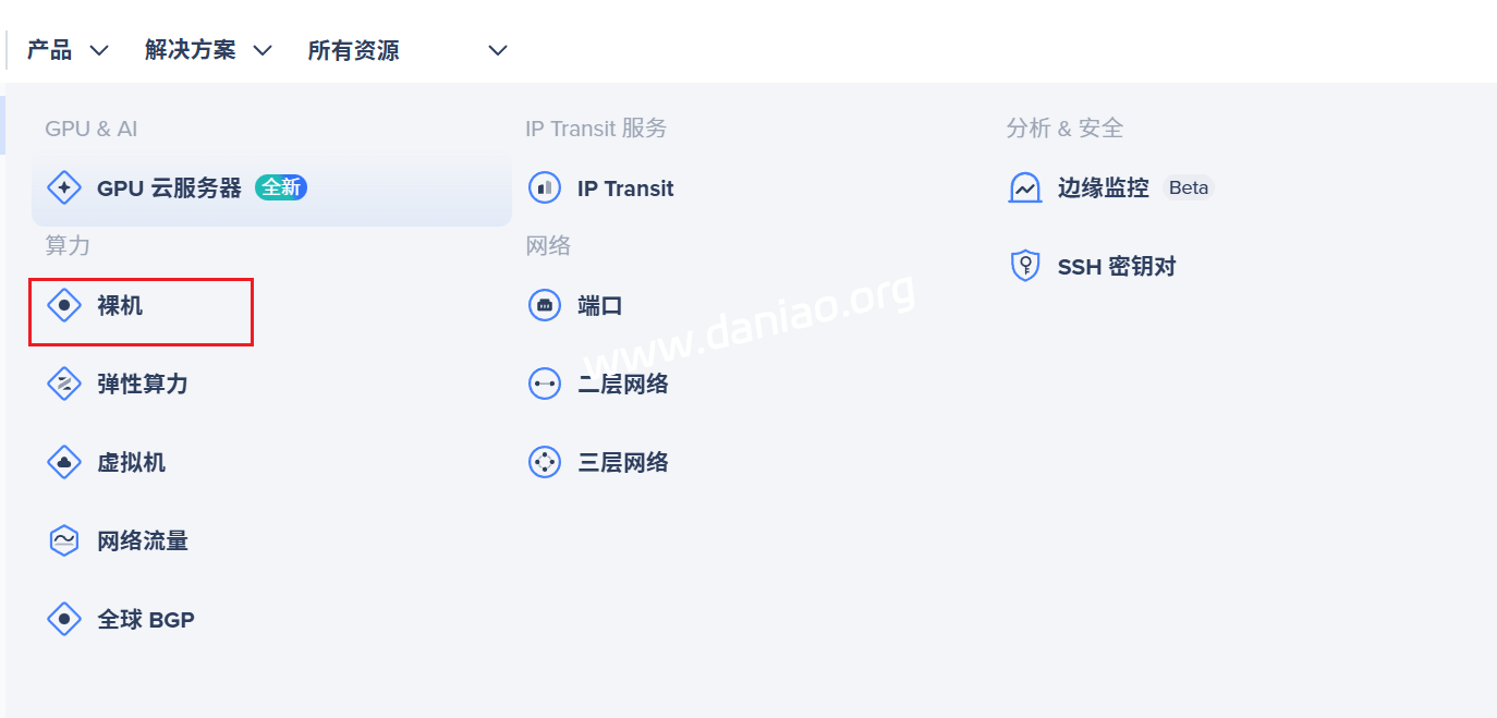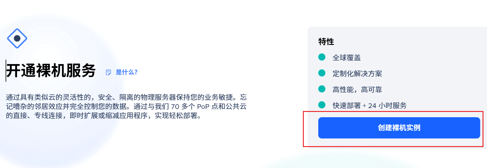 1)选择裸机服务,创建裸机实例。