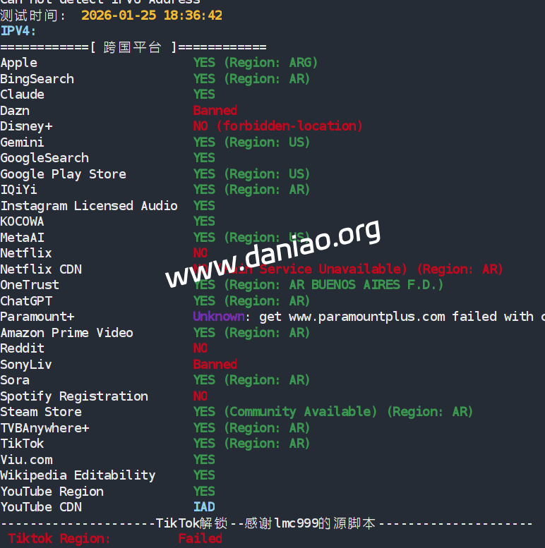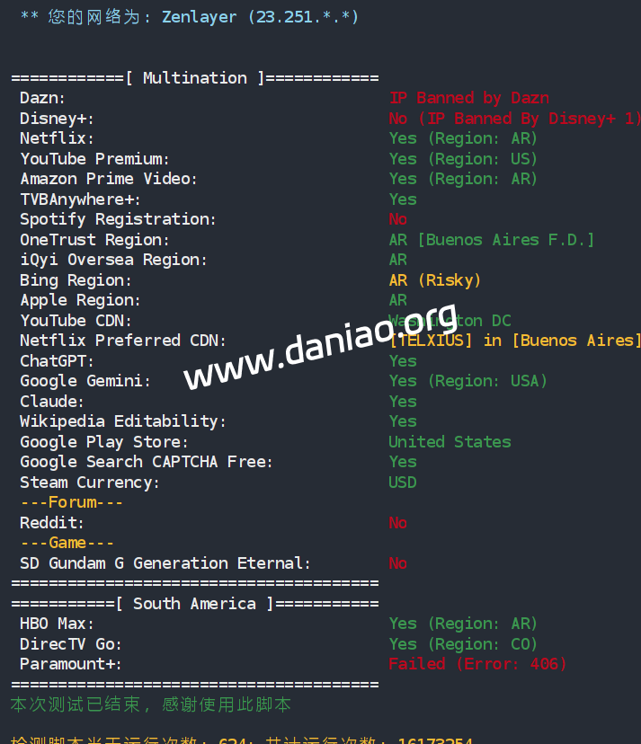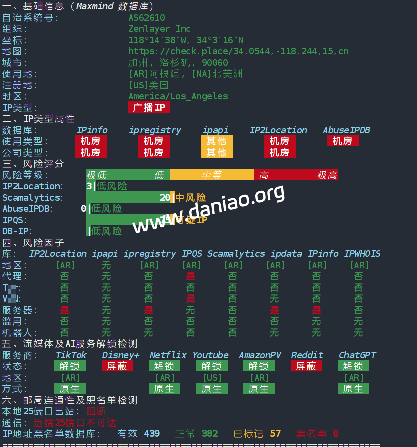 IP质量测试:广播IP,解锁能力也很一般,不过他们家有原生阿根廷IP,购买时候没货了。