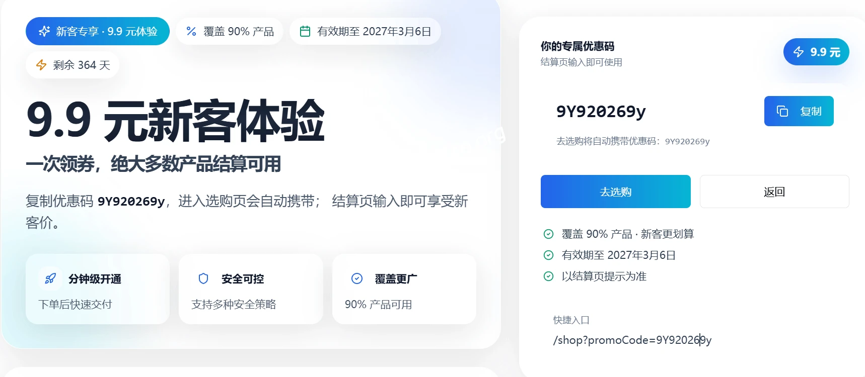 优惠码 :9Y920269y ,进入选购页会自动携带; 结算页输入即可享受新客价。