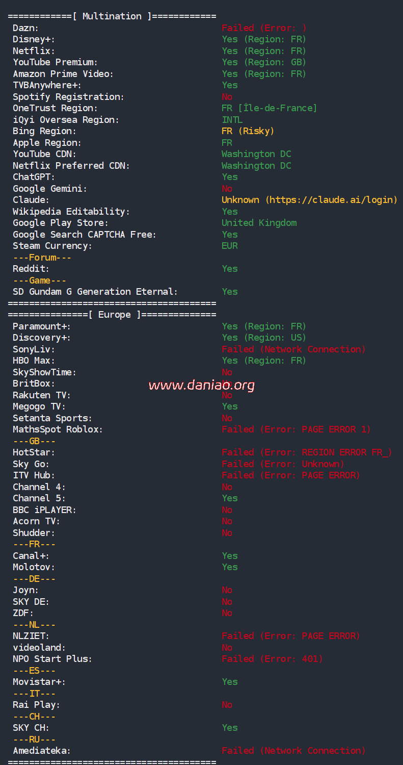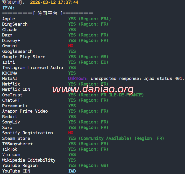 荫云(yin-net)继之前新增了马来西亚ISP VPS业务后又于今天新增了法国双ISP VPS业务,上游提供商为AS197537 WISDOM CLOUD INTERNET TECHNOLOGY PTE. LTD,目前有7折循环优惠,$8.4月/起,500~1000Mbps带宽/原生双ISP属性/法国原生IP。底层为KVM虚拟,SSD阵列,最高1Gbps带宽,纯国际线路。可解锁比如tiktok、chatgpt、Claude、Gemini等。