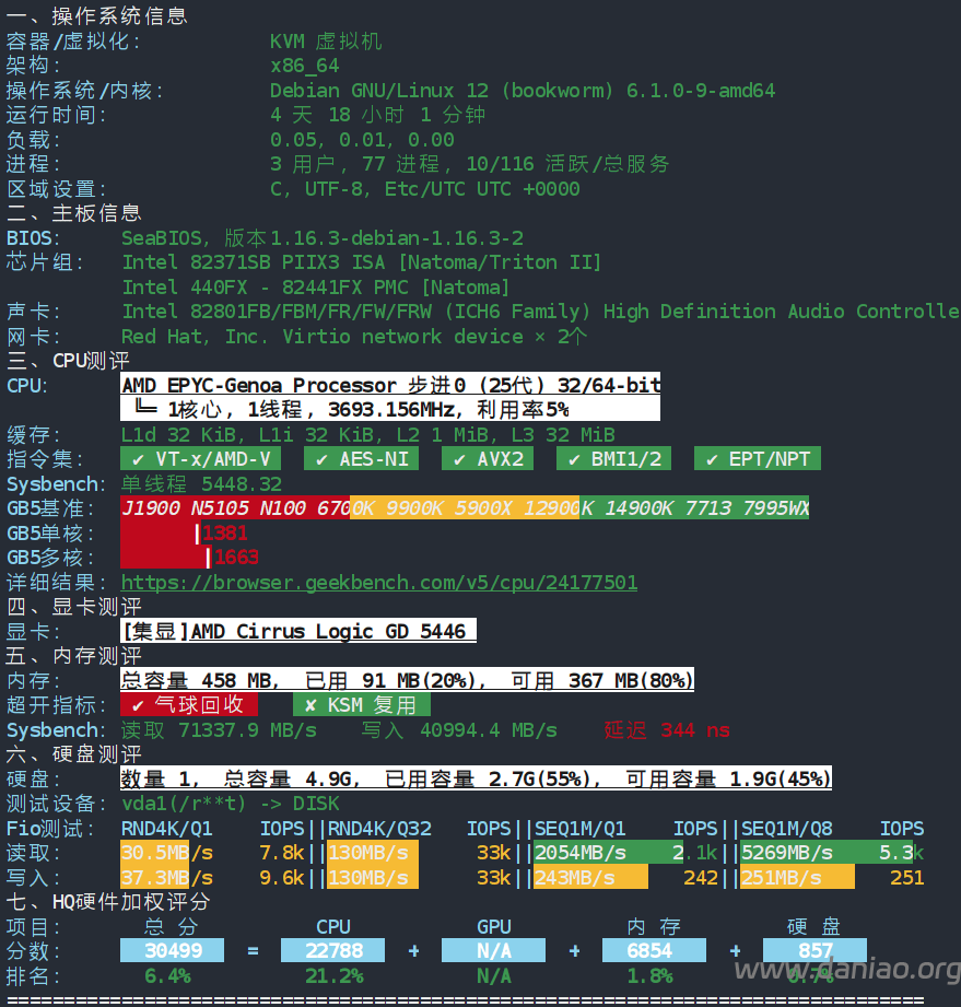 CPU应该是AMD EPYC 9004系列,支持IPv6,当前实测I/O大致1638.4 MB/s: