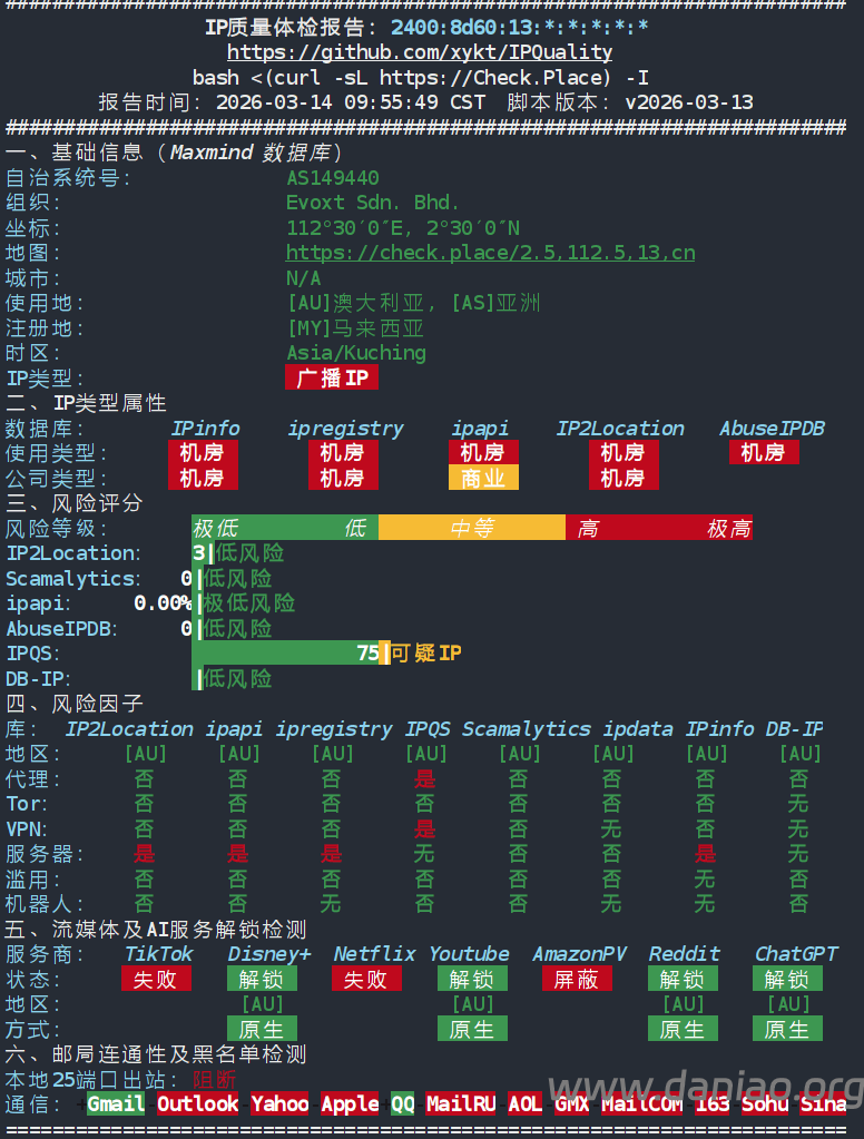 IP质量测试(ipv6):