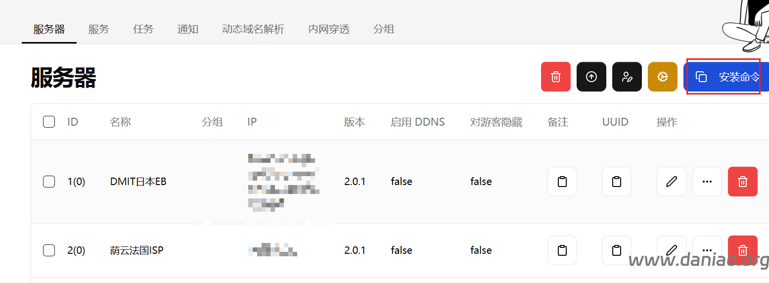 2)安装 Agent,前面都设置好后,在后台服务器,安装命令中选择你对应系统的安装命令,在被控端服务器中运行安装命令,等待安装完成后返回到 服务器 页面查看是否上线。