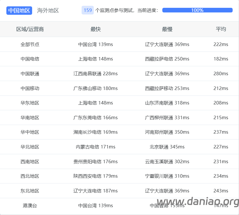 - 上海移动:洛杉矶 -> 西雅图 -> 上海,延迟约 192 ms