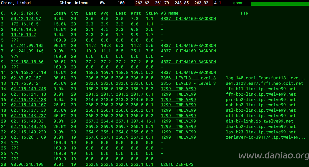 联通回程路由详情:(Arelion -> 4837)