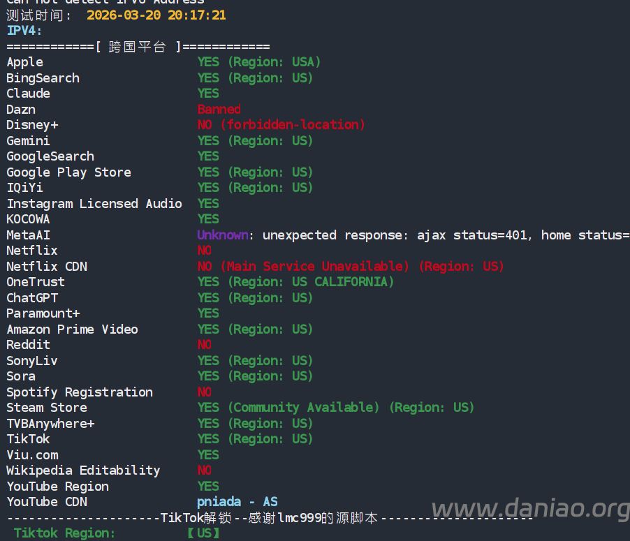 IP为美国原生IP,支持流媒体解锁和 AI 工具