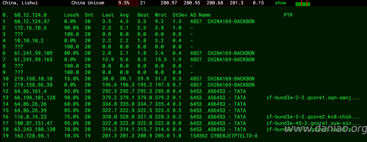 | 联通 (4837) | 延迟最高,全部绕道美国再回国 |