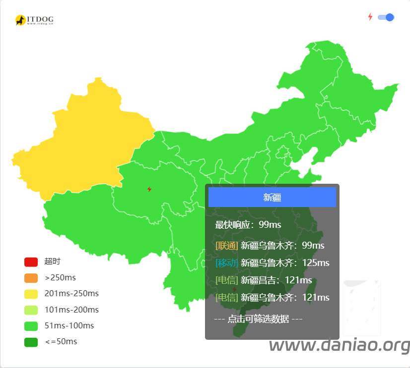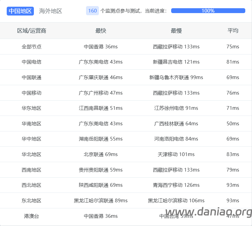 - 广东电信延迟最低(45ms)