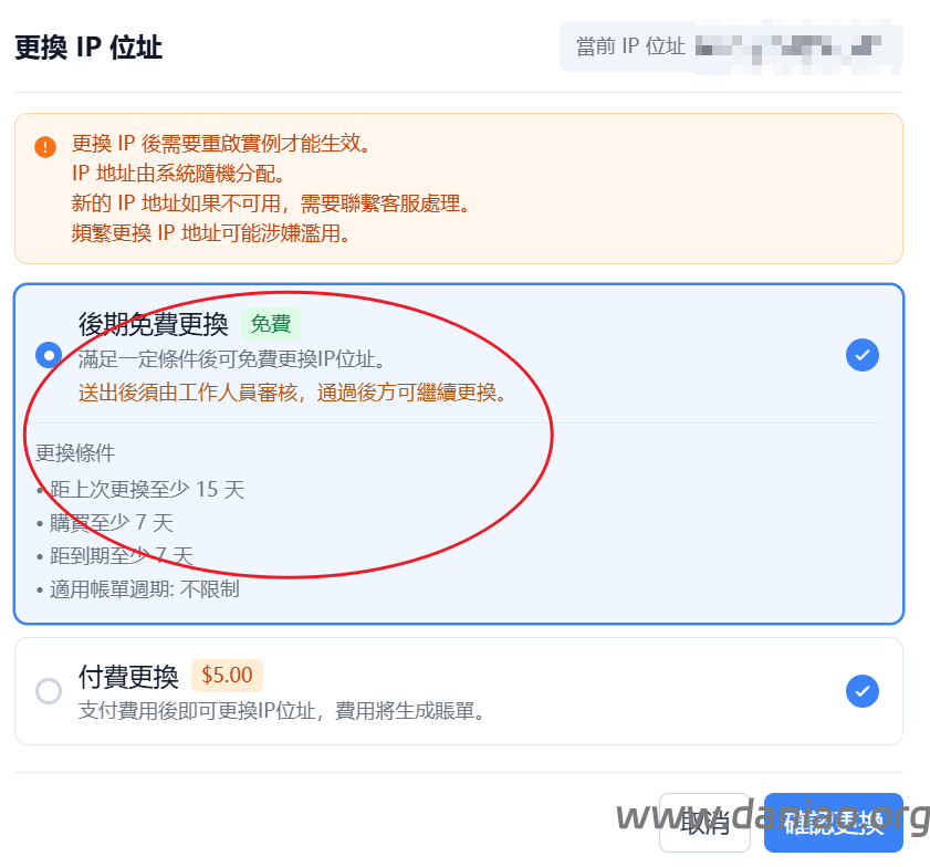 付費更換$5.00/次一般发起请求后24小时内会审核完成,完成后客户在48小时内确认更换,然后10分钟内系统就会更换完了。