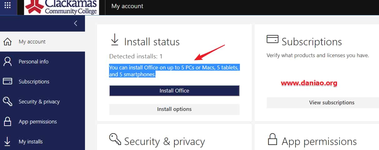 clackamas(克拉克马斯)的edu邮箱是有下载office365教育版的资格的,我们登录之后,可以下载到本地进行安装。