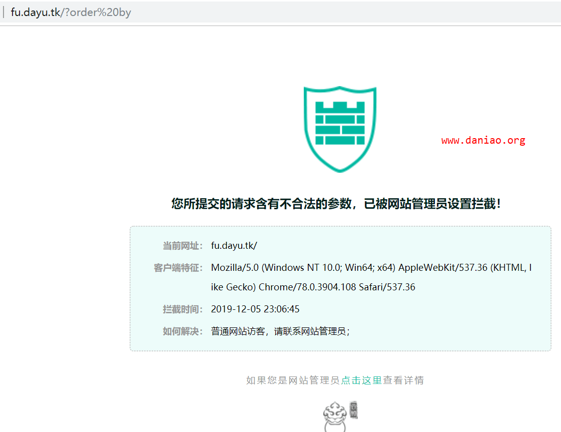 这也是官网提供的方法,在浏览器中执行:http://域名/?order%20by